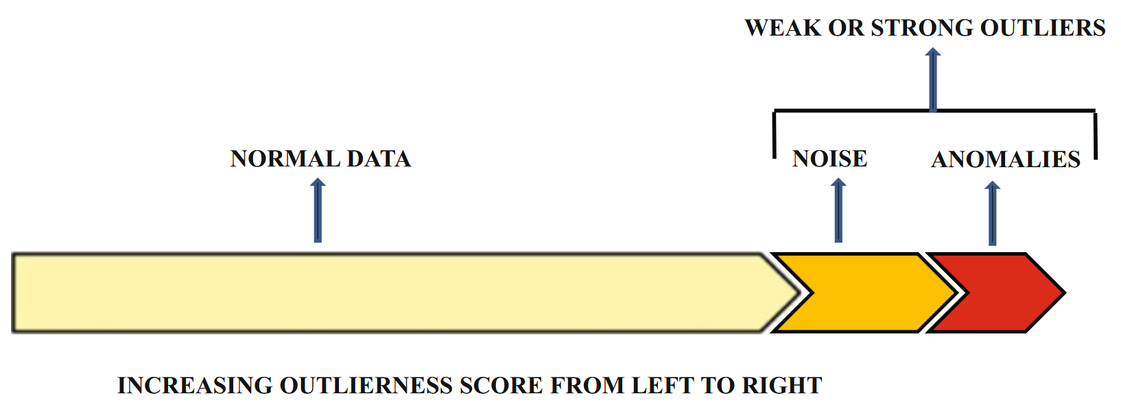 Suatu nilai dianggap outlier jika tidak konsisten dengan data sebelumnya, baik dalam jangka pendek (perubahan tiba-tiba) maupun jangka panjang (pola atau bentuk yang berbeda). Jika seluruh deret waktu tersedia secara offline, kita bisa memanfaatkan data historis untuk mendeteksi anomali. Jika ada beberapa data deret waktu, korelasi antar deret juga bisa dipertimbangkan, meskipun data time series sangat bergantung pada konteks waktu.
