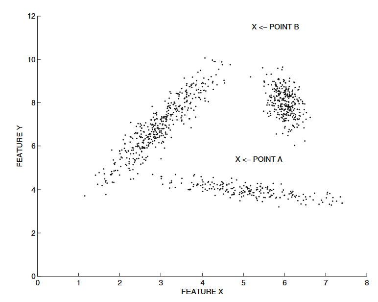 Contoh lain: Model berbasis regresi akan paling cocok untuk menemukan pencilan dalam distribusi data pada Gambar berikut.